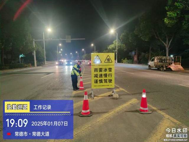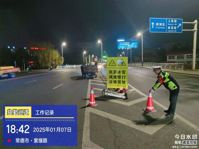 为应对即将到来的低温雨雪天气,全力保障道路交通安全态势平稳,1月7日晚,常德公安交警直属二大队在辖区重点路段、桥梁、上高架位置设置安全提示牌,提醒驾驶人减速谨慎驾驶。
