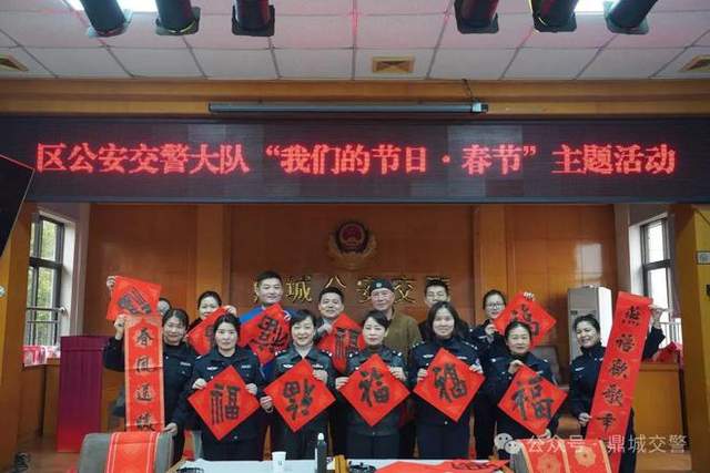 为弘扬传统文化,营造温馨和谐的节日氛围,进一步增强队伍凝聚力,1月22日,常德市鼎城区公安局交通警察大队开展“我们的节日·春节”主题活动,特邀书法家欧阳文志、熊乐为大家写春联,为全体民辅警送上节日祝福。