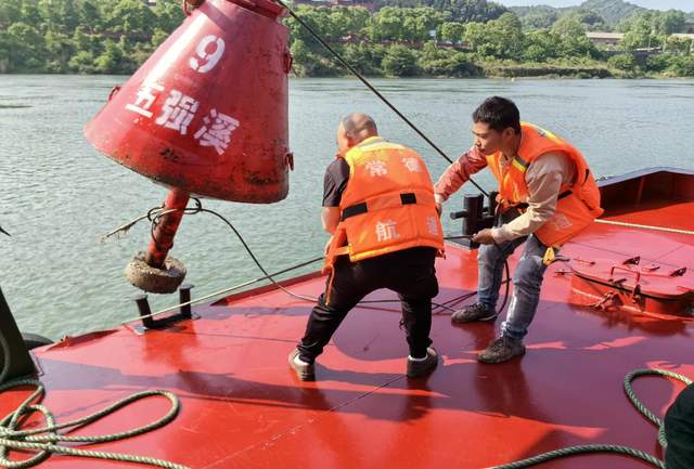 4月28日,五强溪航道管理处接到过往船舶报告,“红9号”标志因汛期水流湍急而发生漂移。工作人员立即启动船舶追寻标志,最终在两公里内的木马溪追上流失标志,并及时拖回原位恢复,做到第一时间发现、最快速度处置,高效保障航道通航安全。
