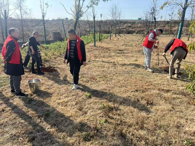 同时,津市航道管理处职工组成义务植树志愿服务队,在处码头开展“守护母亲河,共建生态航道”义务植树志愿活动,以实际行动为航道生态屏障添绿增彩。现场,党员干部冲锋在前,队员们分组协作,有条不紊地培育树苗。职工们搬运树苗、清理杂物、培土浇水,一派繁忙景象。经过3个多小时的劳动,志愿服务队共种植黄桃、蜜桃等果树20余棵,其他花草树木30余棵,修复码头草皮50多平米,为该处“三园化”建设和航道码头沿线增添了新的风景线。