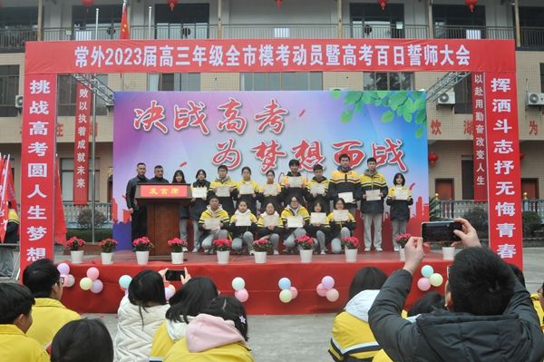 校长朱方武以“一往无前,勤勉实干所向披靡”为主题发表了鼓舞人心的动员讲话。他为高三学子准备了三个备考锦囊:一是坚定不移,做一名为梦想奋斗不息的实干家;二是勇敢无畏,做一名为梦想一往无前的实干家;三是笃行实干,做一名为梦想脚踏实地的实干家。他说,常外历来是一个创造奇迹的地方,今年也一定不会例外,2023届高三全体师生枕戈待旦,剑指高考,定会顶峰相会,问鼎荣耀!祝福常外,高考大捷!