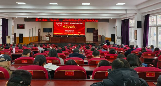 3月3日,常德市第七中学举行第十九届“双馨杯”青年教师教学比武表彰大会,全体教职工参会。