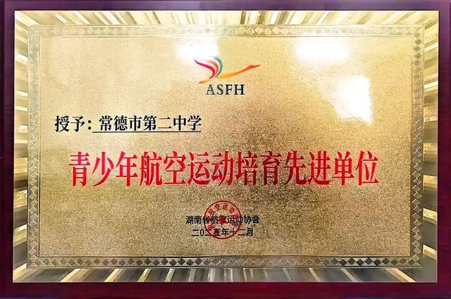 近日,从常德市第二中学传来喜讯,该校凭借在青少年航空运动教育领域的深耕积淀与丰硕成果,荣获“青少年航空运动培育先进单位”称号,这是对学校多年来坚持科技育人、特色兴校的高度认可。