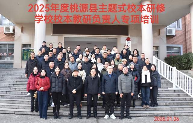 1月6日上午,“桃源县主题式校本研修学校校本教研负责人专项培训”开班典礼在桃源县教师进修学校6楼会议室隆重举行。来自桃源县各学校的50名分管教学、教研工作的副校长齐聚一堂,标志着为期5天的专项培训正式启动。