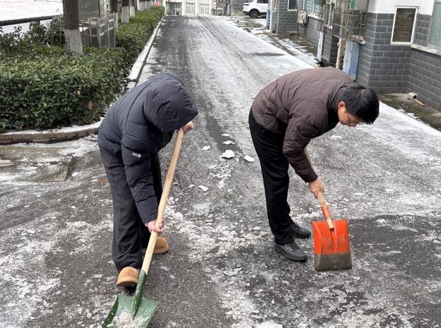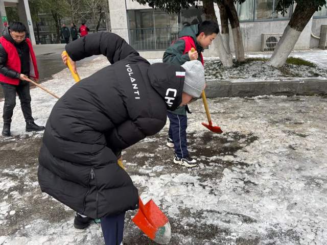 教师们分工协作间高效推进除冰工作——有的用铁锹撬开坚硬的冰层,有的用扫帚清扫残余积雪,有的将雪堆转运至不影响通行的绿化带旁。“我们常教育学生要奉献、要担当,今天我们用行动给他们做出了表率,言传身教的力量,比千言万语都管用。”参与活动的副校长刘永红如是说道。教师们用实际行动践行着教育工作者的责任与担当,为学生们树立了良好的榜样。