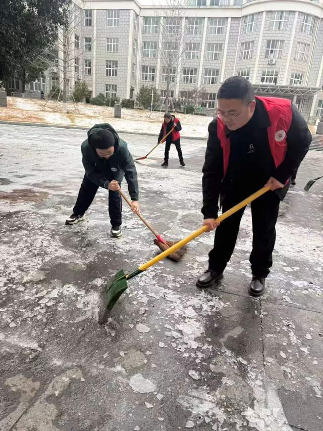 “雪情就是命令,安全就是责任!”接到倡议后,教师志愿者们率先集结,带着铁锹、扫帚等工具赶赴志愿活动现场。大家不顾严寒,弯腰弓步,奋力铲除路面的积雪与冰层。即使寒风刮红了脸颊,教师们仍毫无怨言。“能为孩子们的安全出行多尽一份力,再冷再累都值得。”负责组织本次活动的副校长肖清林说道。