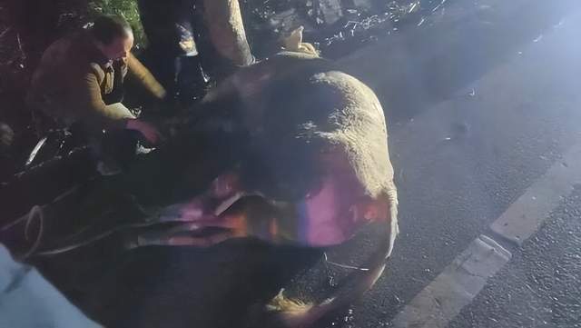 有惊无险,319国道突现疯牛,警民携手“驯牛”。2026年2月2日19时许,汉寿县公安局龙潭桥派出所接到群众报警求助,称有一头牛在运输途中突然挣脱绳索跳出车厢,此时这头牛正在319国道上失控狂奔,见人就追 ,见车就撞,现场情况万分危急。