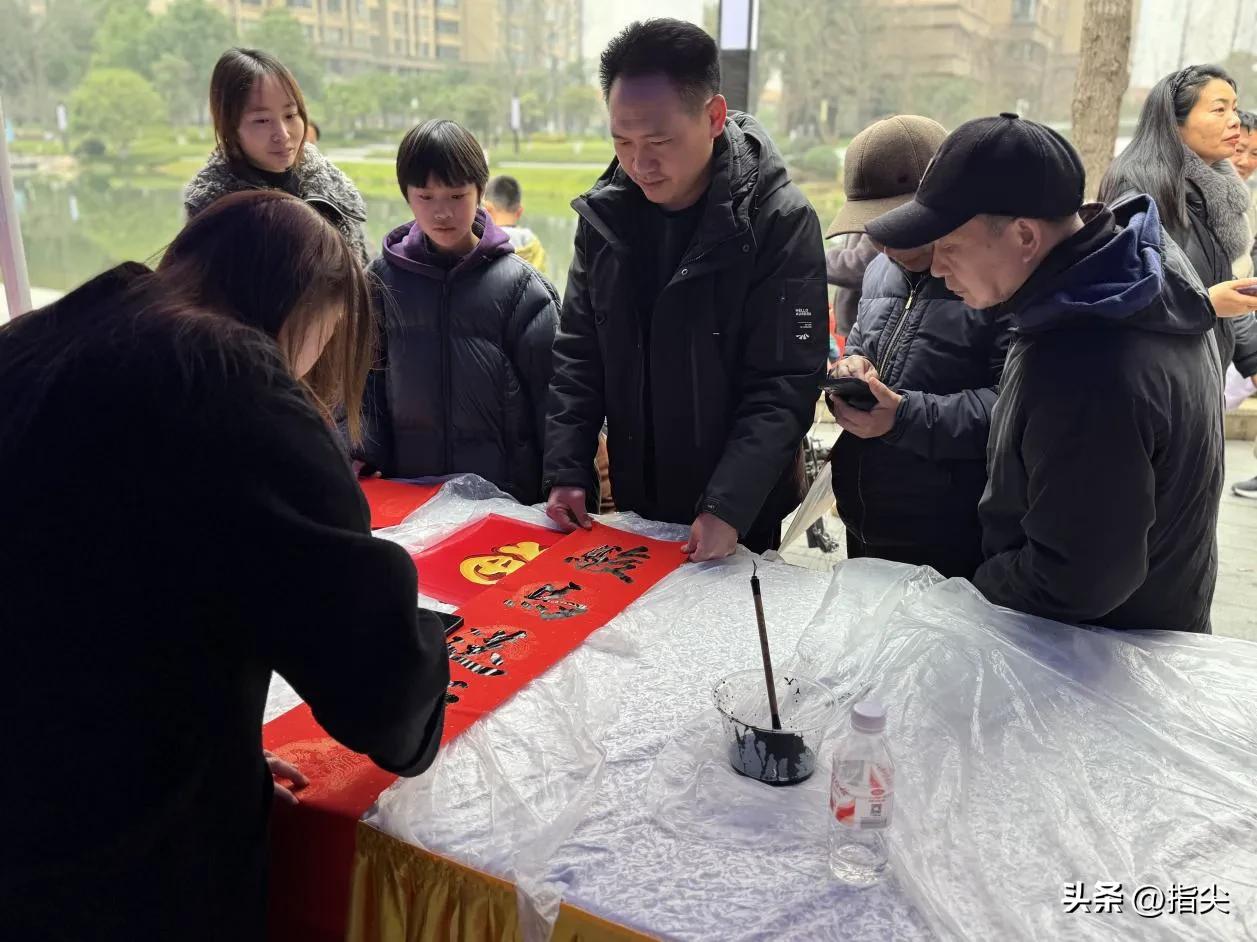 活动现场暖意融融、翰墨飘香。在党员志愿者和物管会工作人员引导下,居民有序排队、踊跃参与。辖区书法爱好者与业主中的“书法达人”现场挥毫泼墨,楷、隶、行等书体各显神韵,一幅幅吉祥春联、一张张喜庆福字跃然纸上,寄托着对2026马年平安顺遂、阖家幸福的美好祝福。居民们驻足欣赏、精心挑选,脸上洋溢着幸福笑容,纷纷称赞活动接地气、有年味、暖人心。