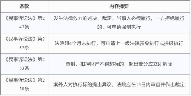 救济渠道畅通:当事人、案外人对执行行为有异议的,可通过法律途径维权。