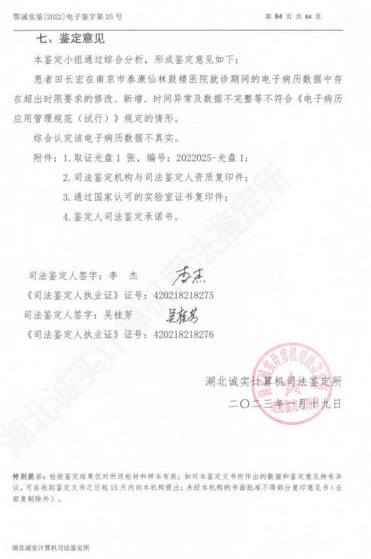 事后,死者家属向当地多个部门投诉举报,却无人受理。家属随后诉至法院,并要求进行司法鉴定。南京栖霞区法院委托一家专业鉴定机构,对医院提供的病历资料进行了司法鉴定,鉴定结果显示:这家医院对该患者病历进行了“不符合病历管理规范要求的修改、新增”(篡改高达三百多次,甚至患者死亡后一个多月还在不断改病历),“综合认定该电子病历数据不真实”。