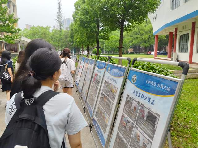活动现场,学生们在武陵区社会禁毒协会志愿者和武陵区白马湖街道工作人员的引导下,参观禁毒展板,通过展板的参观和现场的解说,让学生们对毒品的种类、毒品的危害有了更深刻的认识,在思想上、心理上、行为上构筑拒绝毒品的坚强防线。