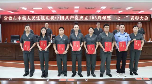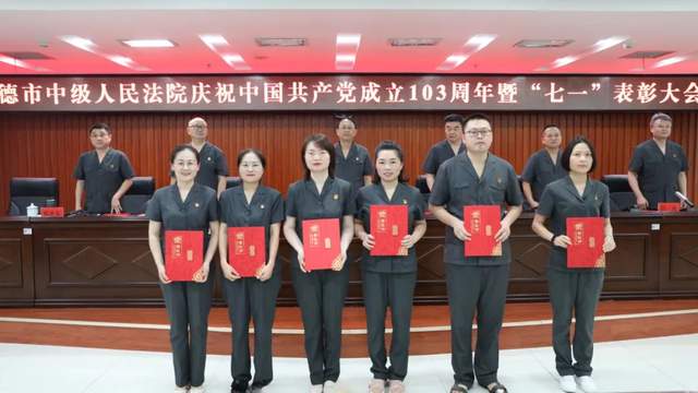 2024年7月1日是中国共产党成立103周年,为弘扬伟大建党精神,表彰先进,进一步激发广大党员干警干事创业的工作热情,6月28日,常德市中级人民法院隆重召开庆祝中国共产党成立103周年暨“七一”表彰大会。院党组书记、院长张经伟,党组副书记、副院长、机关党委书记郭建出席会议,党组成员、政治部主任管勇主持会议。在家院领导、全院干警以及退休老党员代表参加会议。