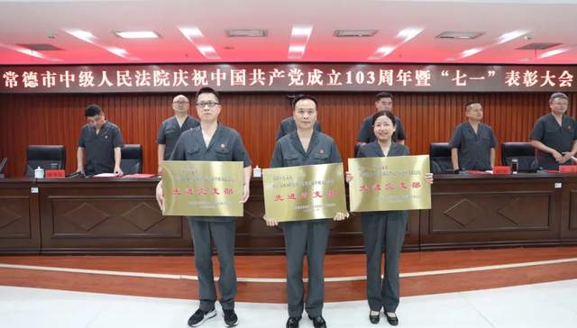 大会在庄严的国歌声中正式开始。院机关党委专职副书记左卉宣读了《常德市中级人民法院关于表彰2024年度优秀共产党员、优秀党务工作者、先进党支部的决定》,向办公室党支部等3个先进党支部、谈应中等10名优秀党务工作者、陈慧芬等30名优秀共产党员颁发了奖牌及荣誉证书。