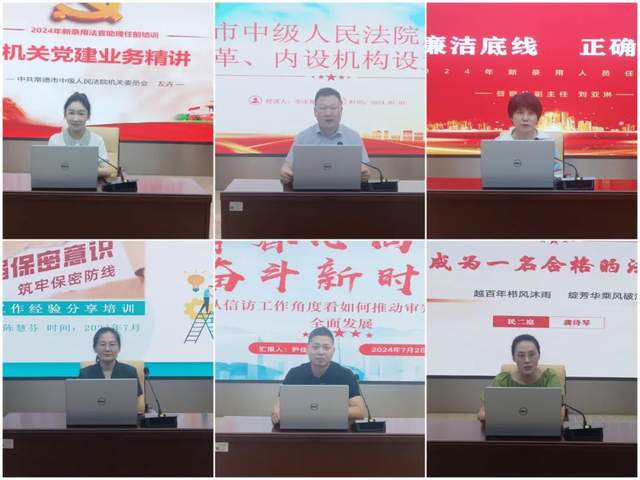 根据安排,6名同志从党建工作、中院历史沿革、廉政纪律、保密、业务知识等方面进行了授课。