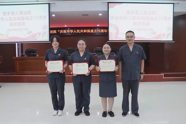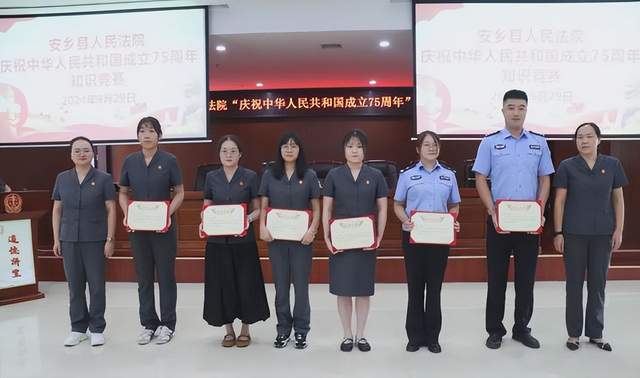 为庆祝新中国成立75周年,弘扬爱国主义精神,深入学习贯彻党的二十届三中全会精神,9月29日,安乡县人民法院举办“庆祝中华人民共和国成立75周年”知识竞赛活动。