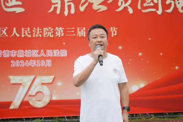 为进一步丰富和活跃法院文化生活,激发干警干事创业活力激情,10月16日,以“金秋庆华诞 鼎法贺国强”为主题的常德市鼎城区人民法院第三届文化节正式开幕。党组副书记、副院长王继春致辞,党组书记、院长胡志勇宣布开幕。