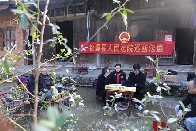 近日,桃源县人民法院三阳法庭来到桃源县观音寺镇开展巡回审判,将法庭搬到人民群众家门口,审理一起相邻关系纠纷案件,给当事人提供司法便利服务的同时,以群众身边的真实案例释法明理,提升基层群众的法治意识。