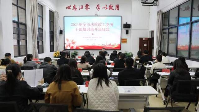 为贯彻落实党的二十届三中全会精神,全面提升全市法院政工、党务干部的业务能力和综合素质,加强法院队伍建设,为审判工作高质量发展提供有力保障,12月2日至3日,常德市中级人民法院举办全市法院政工、党务干部培训班,各基层法院分管政治工作的院领导、政工专干、党务专干及市中院政治部干警等40余人参加培训。市中院党组成员、政治部主任管勇出席开班仪式,并就公务员管理政策专题授课。