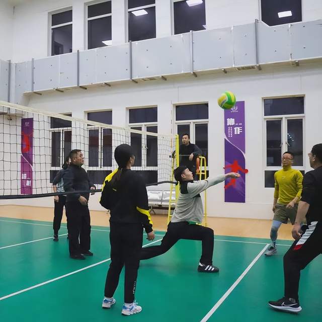 对抗赛采用五局三胜制,由两支强强组合的队伍进行终极比拼,双方队伍气势如虹,一个个敏捷的发球、精准的抛球,一次次的扣球、拦网,把进攻和防守展现的淋漓尽致,场外也热闹非凡,每一次精彩的传球与得分都迎来欢呼阵阵。