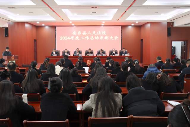 岁序常易,华章日新。近日,安乡县人民法院召开2024年度工作总结表彰大会,总结回顾2024年工作,展望2025年工作远景。该院党组书记、院长王庆全出席会议并讲话,党组副书记、副院长魏开富参会,党组成员、政治部主任任杰主持会议。全体在家院领导及干警参加会议。