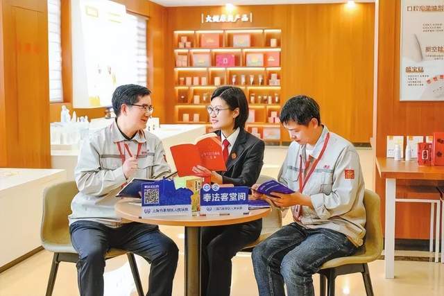 近日,在上海某中药企业产品展示厅内,上海市奉贤区人民法院奉贤新城人民法庭副庭长陈蓓以“民法典守护中医药”为主题展开普法宣传和法律咨询。(仲偲璟 毛振亚 摄)