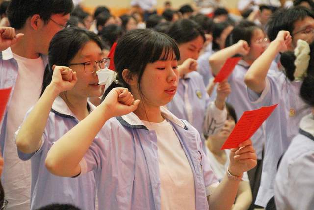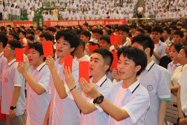 “奋飞横绝,志存高远,有乘风破浪的豪情;博学弘毅,跬步之光,有功在不舍的恒心……”庄严地宣誓声将活动推向高潮。高三学子紧握拳头,庄严宣誓,喊出成人誓言,青春的誓言响彻云霄。