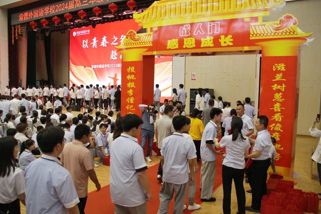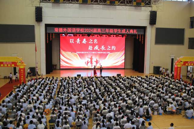 十八成人志远长,六月乘风迎骄阳。5月15日,常德外国语学校才艺馆人声鼎沸,一场以“以青春之名,赴成长之约”为主题的2024届高三年级学生成人典礼正在这里举行。437名朝气勃发的青年学子在老师、家长的陪伴下,在高一、高二年级学弟学妹们的见证下,迎接自己的成人时刻。