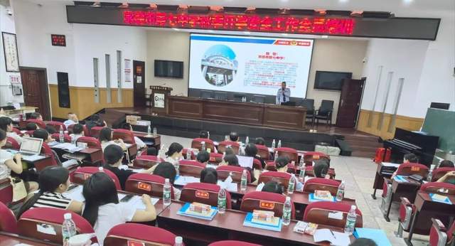 8月29日上午,常德市第七中学邀请常德市公安局警官培训中心教务主任欧明松来校开展“校园安全应急处理与法律风险防范”专题讲座,全体教职工参加。讲座由副校长杨开文主持。