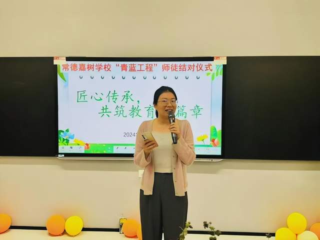 仪式在庄重而温馨的氛围中正式拉开帷幕。常德嘉树学校副校长余新伟声音铿锵有力,满怀期待地宣布了2024年度“青蓝工程”师徒结对名单。每一个名字的背后,都是一位青年教师将与资深教师携手共进、开启学习与成长的旅程。会场上,激动与期待交织,气氛瞬间达到了高潮,凝聚着对未来教育传承的无限希冀。
