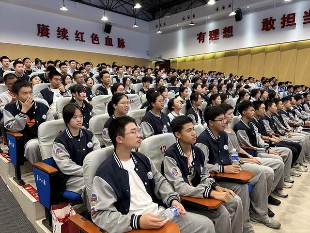 在韶山学校的礼堂,同学们聆听了一堂启迪心灵的思政大课《恰是风华正茂》。课程分为“韶山少年”“辗转求学”“傲立潮头”“时代青年”四大篇章,讲述了毛泽东同志立志救国、不断求索到最后成就大业的人生历程,激励着青年学子传承红色的基因,延续红色的血脉,争做“有理想、敢担当、能吃苦、肯奋斗”的新时代青年。