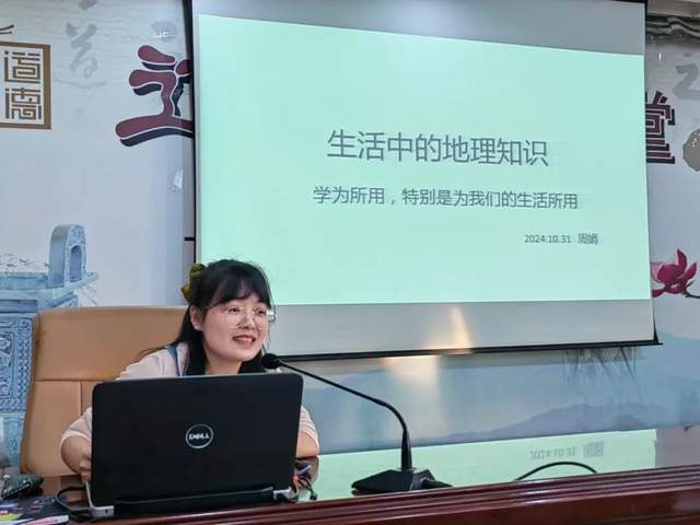 周娟以《生活中的地理》为题,结合自己丰富的专业知识,立足日常生活,为大家展开了一场别开生面的地理学科讲座。她首先以学校食堂前的银杏树作为导入,引出论坛的主题。接着从饮食与地理、民居与地理、服饰与地理、娱乐与地理、语文与地理以及旅游与地理六个维度,介绍了东辣、西酸、北咸、南甜的中国饮食格局形成的原因,湘西吊脚楼、青海西宁传统四合院、西藏碉房与气候及地形的关系,中国藏袍和阿拉伯人的长袍不同的地域特点,不同季节旅游地点的选择等内容,从衣食住行等方面为与会人员列举了种种有趣的地理现象,阐释了其背后蕴含的地理原理,引领老师们欣赏生活中的地理,感悟地理中的生活。