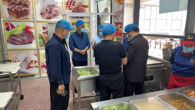 在督导中,督导组对学校食堂环境卫生、人员健康、水质检测、食材购进、食品加工流程布局及相关制度、登记表格等方面进行了检查。