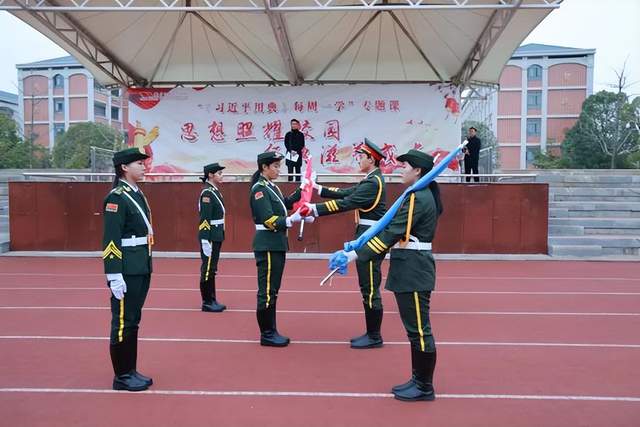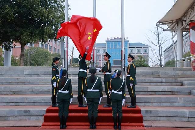 从皑皑白雪的漠河到四季繁花的三沙,从每日迎接第一缕阳光的抚远到位于帕米尔高原的西极,辽阔的中华大地上,总有一面鲜红的旗帜高高飘扬。五星红旗之下,亿万中华儿女始终砥砺前行。12月9日清晨,又是一个五星红旗迎着晨曦冉冉升起的时刻,常德市第六中学2024届国旗护卫班郑重地从2023届国旗护卫班手中接过鲜艳的国旗,接过守护国旗的神圣使命。交接的过程很短,却传递着一种精神,传递着永不磨灭的家国情怀。
