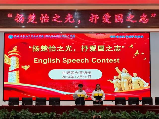 为了促进学生核心素养的全面发展,进一步激发学生学习英语的兴趣,并丰富校园生活,桃源县职业中专英语教研组经过精心策划,在12月15日晚举办了一场以“扬楚怡之光,抒爱国之志”为主题的英语演讲比赛活动。