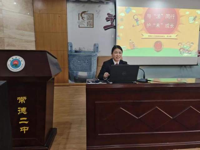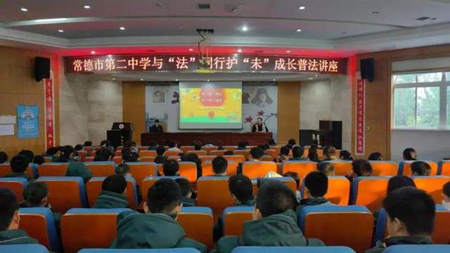 12月11日,常德市二中邀请武陵区人民检察院第一检察部副主任谭玉蓉来校开展《与“法”同行,护“未”成长》普法讲座活动。谭玉蓉通过丰富而生动的案例向同学们宣讲了《未成年人保护法》,对如何预防校园欺凌、预防性侵等热点问题进行讲解,引导同学们在日常生活中自觉尊法、学法、守法、用法。