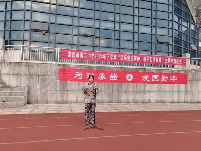 12月2日上午,常德市二中师生齐聚田径场,举行“弘扬宪法精神维护宪法权威”主题升旗仪式。
