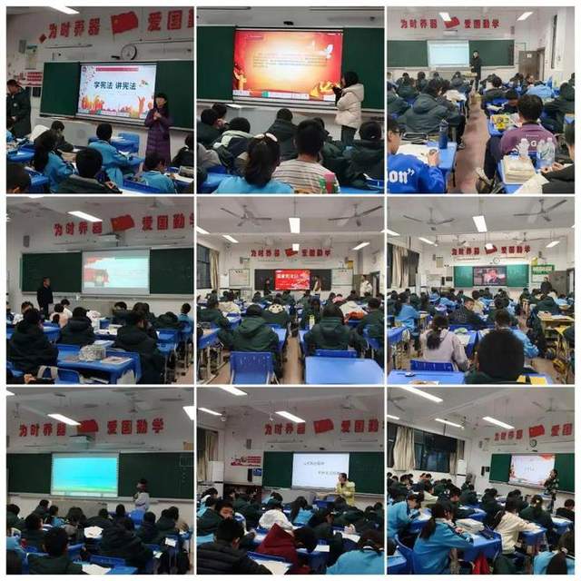 12月上旬,各年级各班召开丰富多样的“弘扬宪法精神维护宪法权威”主题班会课,通过图片、视频等资料,进一步了解宪法知识,引导学生成为宪法的忠实拥护者、自觉遵守者和坚定捍卫者。