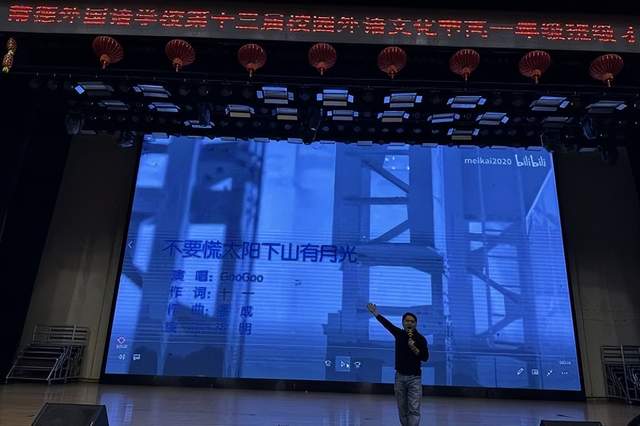 大赛最后,班主任周佳老师倾情演绎《不要慌太阳下山有月光》。新颖多样的节目形式,艺术与生活的完美融合,展示了常德外国语学校高一师生深厚的艺术底蕴和昂扬的青春姿态。