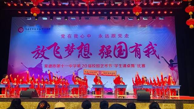 2024年12月20日,常德市第十一中学的校园里洋溢着欢乐与激情。“放飞梦想强国有我”校园艺术节课桌舞比赛在此盛大举行。14个班级精心准备,精彩节目依次呈现,八年级700余名师生共同沉浸在这场文艺的盛宴之中。