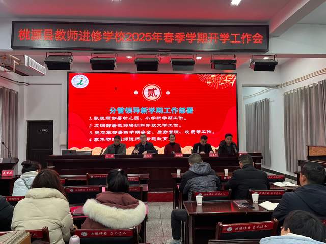 为推动新学期各项工作高效、稳步开展,扎实做好开学各项准备工作,2月11日上午,桃源县教师进修学校召开2025年春季学期开学工作全体教职员工会议,统一思想,凝聚共识,共同规划新学期学校发展蓝图。