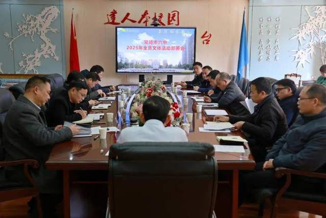 2月27日下午,春意盎然,阳光明媚。常德市第六中学2025年全员文体活动部署会在科教楼二楼会议室举行。学校领导班子成员、中层干部、音体美学科教师参会。众人畅所欲言,为全员文体活动的开展献计献策,力争实现“人人都参与、班班有队伍、周周有比赛、月月有活动、层层抓落实”,打造文体特色示范校。