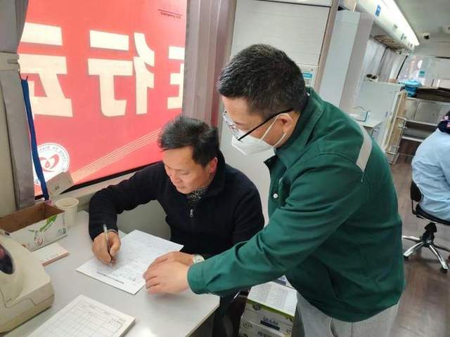 医务人员指导戴拥军老师填表