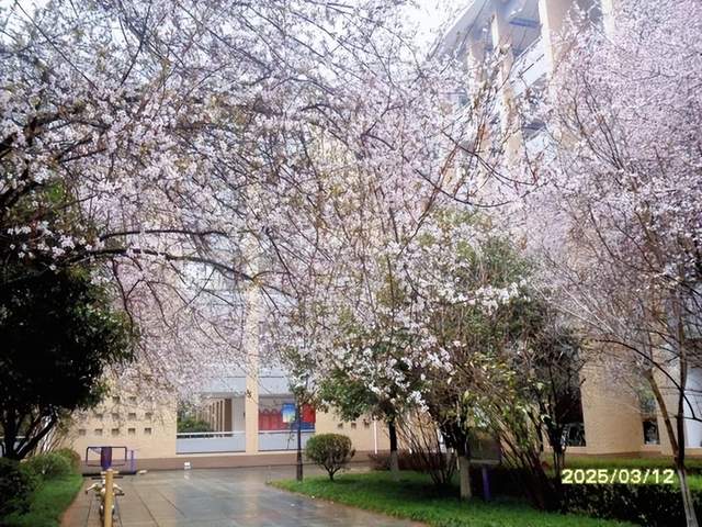 在众多作品中,美术组曾蕾融老师以专业视角创作的《四季美学图谱》系列尤为瞩目:从樱雨落檐的光影韵律,到世纪大道的金色私语,她用构图与色彩将校园风景淬炼成视觉诗篇,为展览增添了一抹独特的艺术深度。