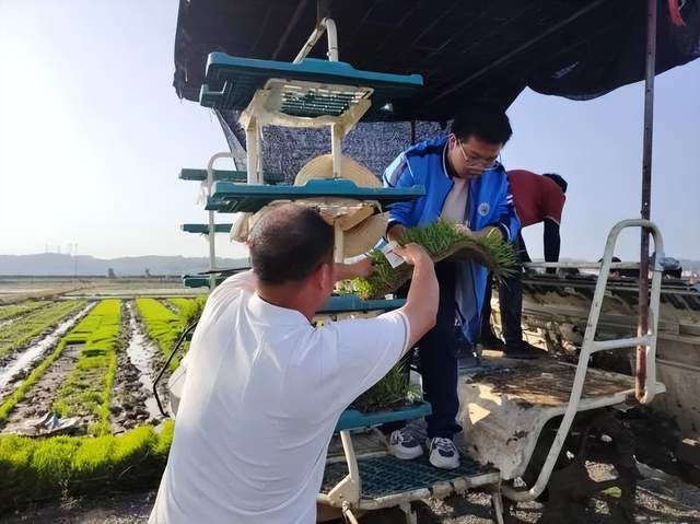 行至田间地头,学生们拔起青绿的秧苗,在田埂间传递秧盘,亲身体验当地春季农业生产活动。在农业服务中心主任程罗成的带领下,学生们通过观摩育秧大棚与农机使用、体验农业生产活动,直观感受了枫树维回乡人民齐心协力发展农业现代化的魅力。近年来,枫树维回乡主推蒸汽式催芽、大棚多层育秧、机械化播种、智能化控制、麻地膜培育、智能密室齐苗等六项工厂化育秧技术,扎实推进农业生产现代化,构建出一幅幅乡村振兴的科技图景。