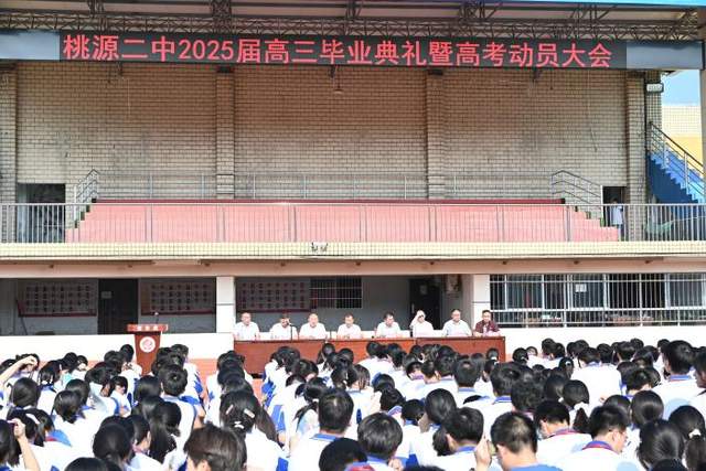 为给即将踏上高考征程的学子们加油鼓劲、送上祝福,6月6日上午,桃源县第二中学举行2025届高三毕业典礼暨高考动员大会,全体高三学生、学校领导齐聚一堂,共同见证这意义非凡的时刻。