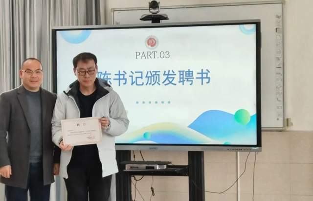 仪式上,郭丽扬宣读《常德市第十一中学科学副校长聘任决定》;陈学红为张鹏钾颁发聘书并合影留念,标志着张鹏钾正式加盟常德市第十一中学,成为学校深耕科学教育的同行者、引路人。