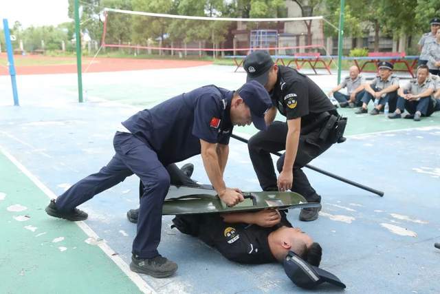 随后,特巡警大队副大队长胡长城还结合安防器材使用、突发事件处置等知识进行授课。重点对器械攻防技能,特别是盾牌、腰叉、长棍、钢叉等常规安保器械的性能及使用方法进行集中讲解和示范。