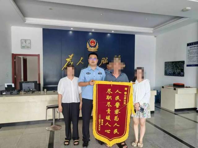 8月6日,常德经开区公安局德山派出所的民辅警以高度的责任心和使命感,成功救助了一位走失老人,走失老人及家属将一面绣着“人民警察为人民 尽职尽责暖人心”的锦旗送到了派出所的民辅警手中,表达他们内心的感激之情。