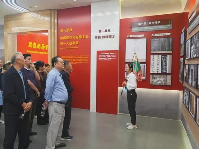 随后,老干们又怀着无比崇敬的心情踏进了赵必振文化研究中心。在讲解员的引导下,老干们认真聆听了赵必振同志的生平、译著等,详细了解赵必振为中华民族而奋斗的光辉历程。在这里,老干们驻足观看,感悟革命情怀,无不被赵必振及其他英烈的英勇事迹和崇高精神所感动。