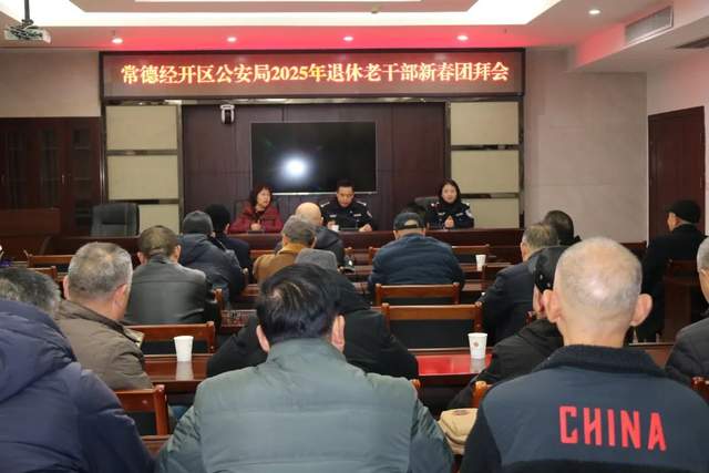 在蛇年新春佳节来临之际,1月22日,常德经开区公安局举行2025年退休老干部新春团拜会。局党委书记、局长、二级高级警长郭民忠,党委副书记、政委徐明刚出席了会议,会议由党委委员、政工室主任杜杰主持,老干党支部书记罗纯以及30余名老干部代表参加了新春团拜会。